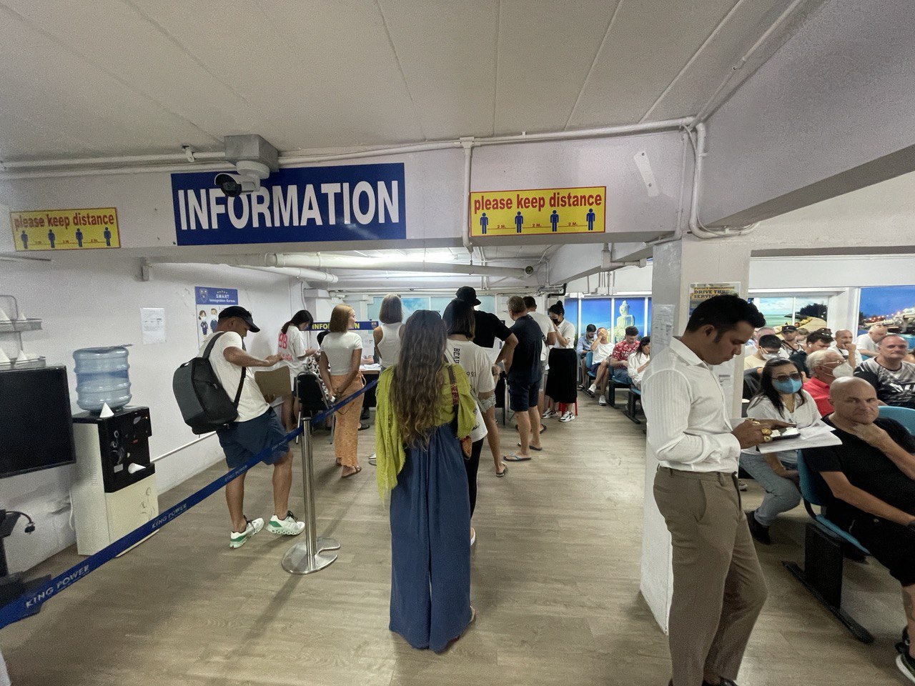 Далее вас встретят волонтеры, они как правило хорошо разговаривают на английском, им необходимо передать пакет необходимых документов, а так же оплату пошлины. Взамен вы получите талончик с номером.